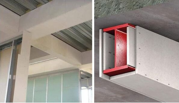 Provides robust fire protection by encasing structural steel members with fire-rated boards.